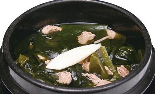 (本文来源于图老师网站,更多请访问http://www.tulaoshi.com/hejiu/)韩式海带汤:海带干1包28克,牛肉115克,捣成肉末,芝麻油10毫升,酱油20毫升,盐6克或适量,水1420毫升,蒜末3克。